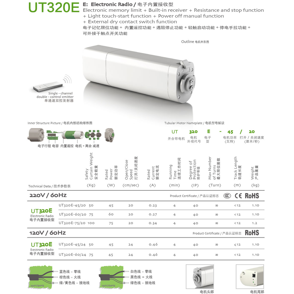 電子記憶限位功能+內置遙控功能+遇阻停止功能+輕觸啟動功能+停電手拉功能+第三行程點功能+可外接干觸點開關功能