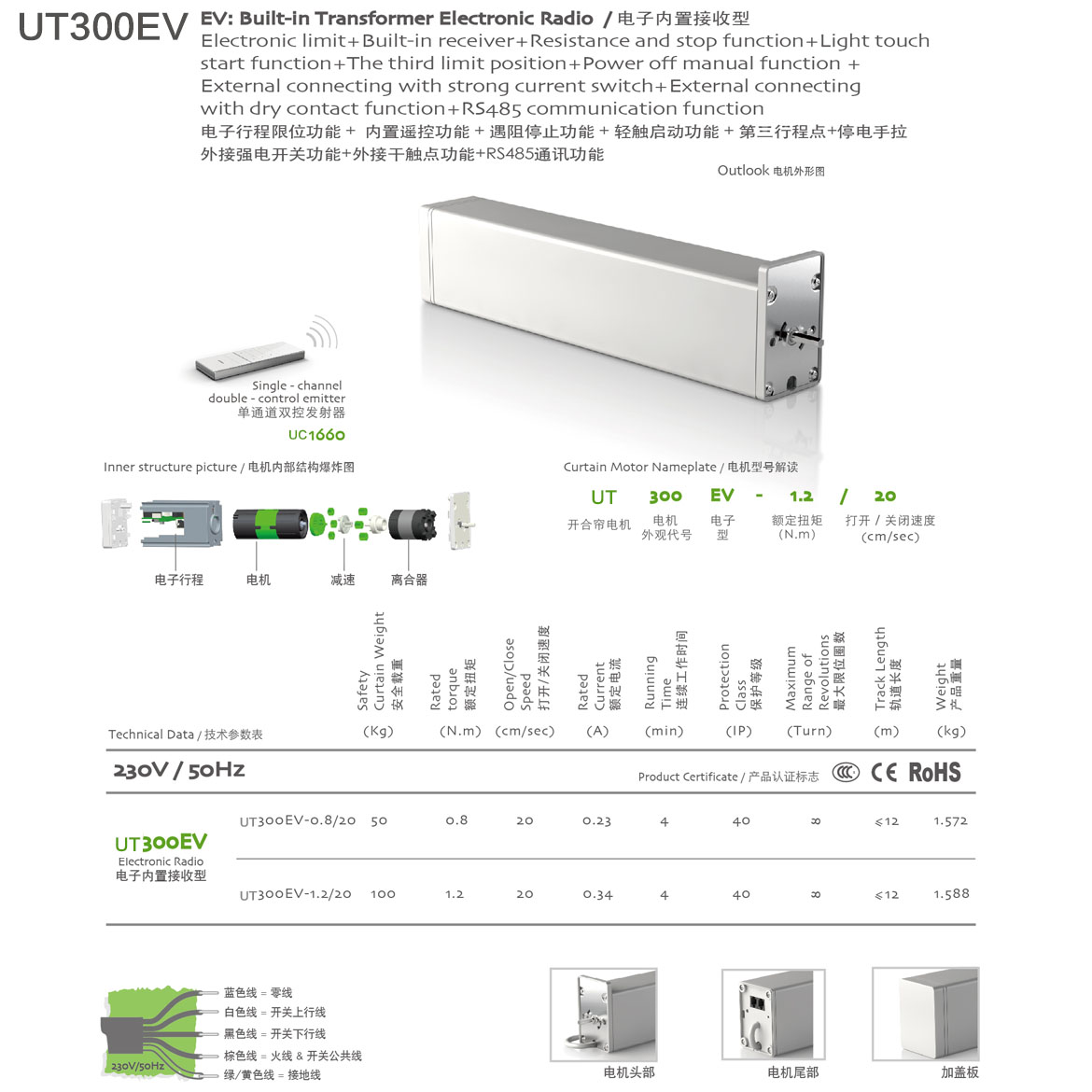 電子記憶限位功能+內置遙控功能+遇阻停止功能+輕觸啟動功能+停電手拉功能+第三行程點功能+可外接干觸點開關功能+可外接強電開關功能+插卡取電功能+RS485功能