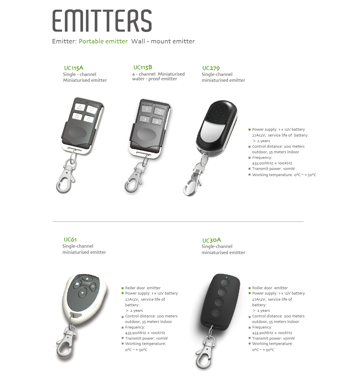 electric garage door openers:Single-channel emitter