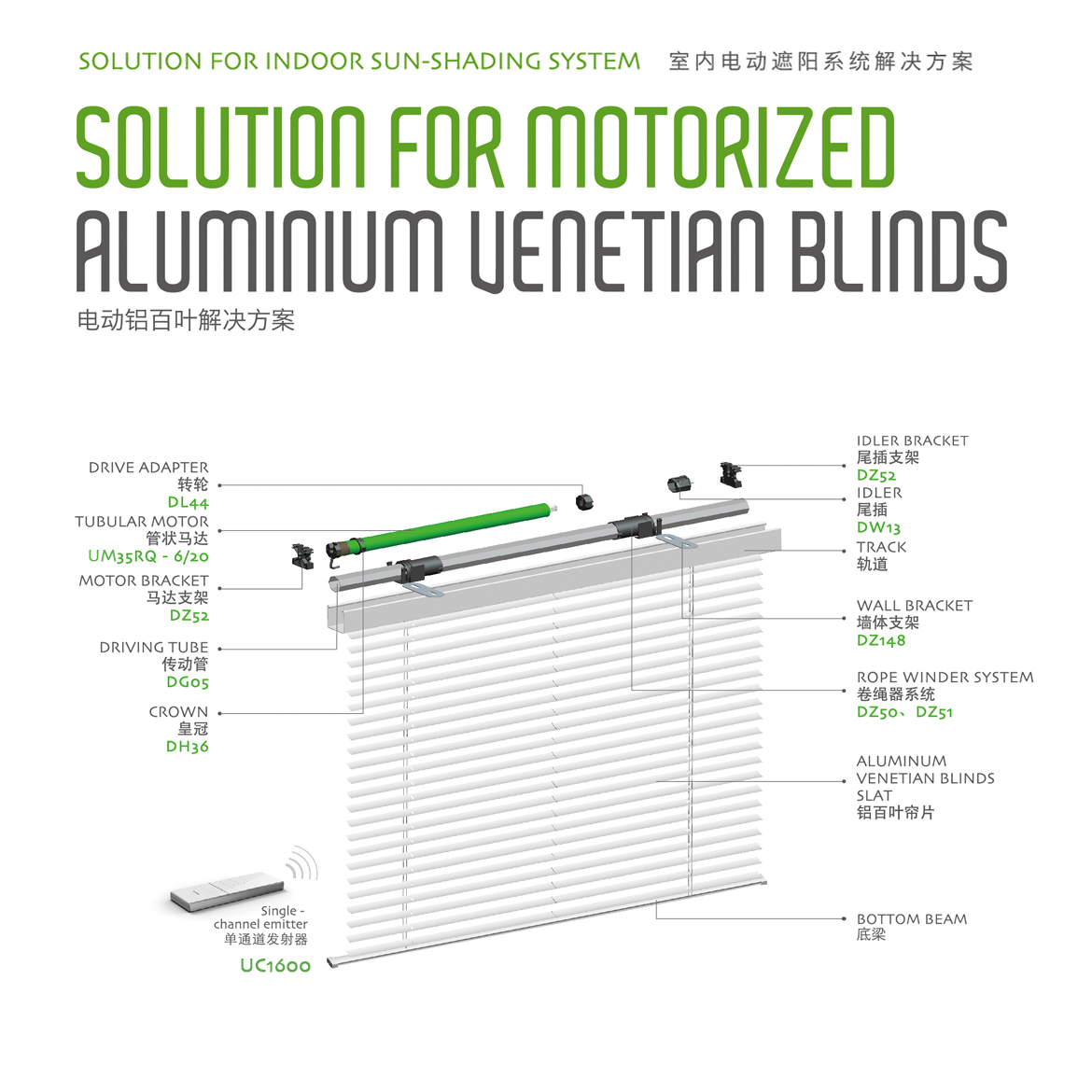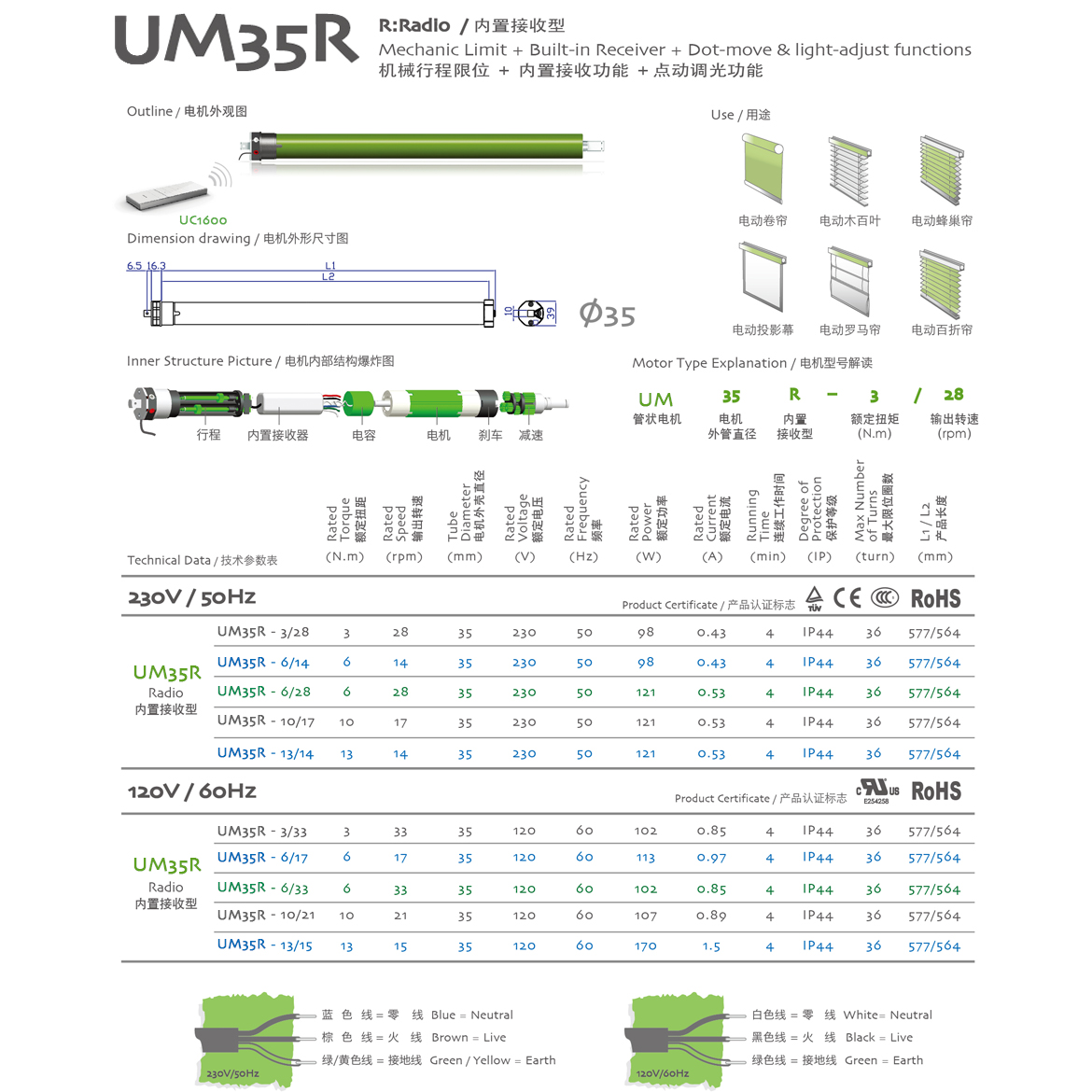 R:Radio/內置接收型 機械行程限位+內置接收器+點動調光功能