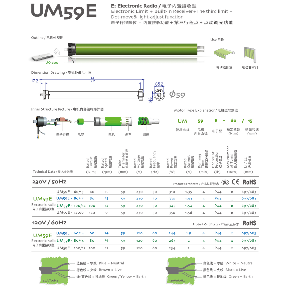 E:Electronic Radio/電子內置接收型 電子行程限位+內置接收器+點動調光功能+第三行程點